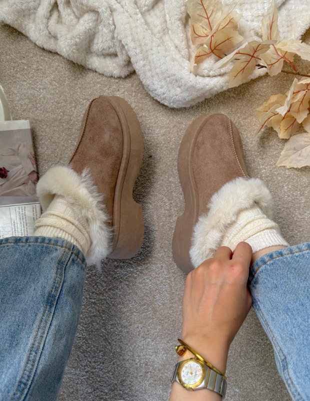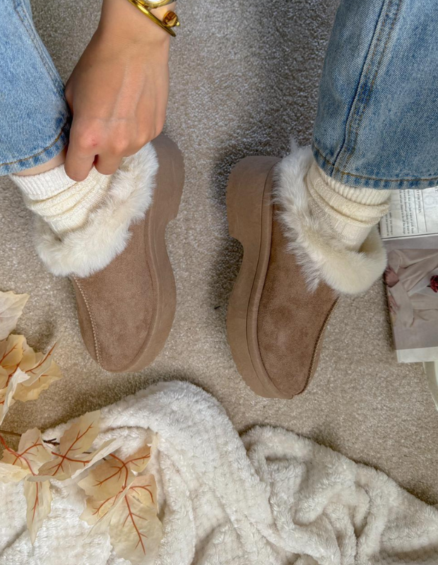 פלאשיק הוא דגם פלטפורמה חדש ומפנק במיוחד — עם שכבת פרווה רכה ועדינה שמחבקת את הרגל, נוחות חלומית וסטייל שאין שני לו.