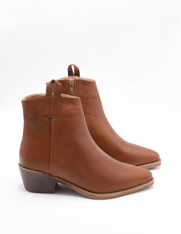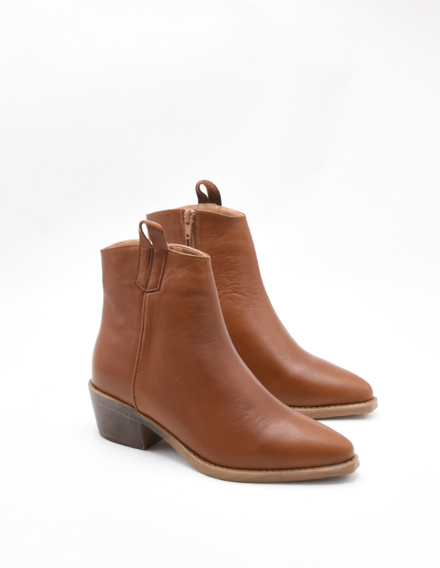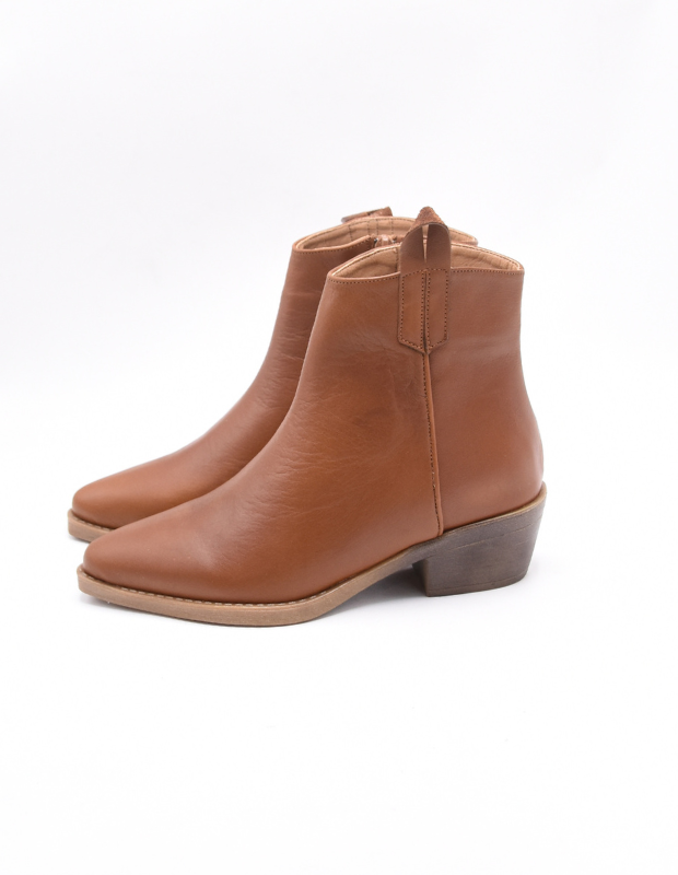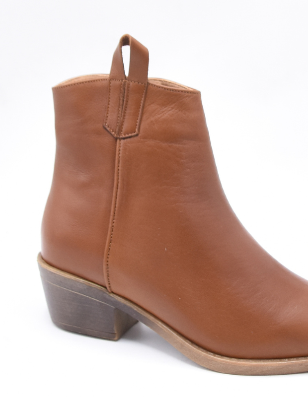 מגפון עור בעבודת יד, בעיצוב בוקרי עדין ונשי במיוחד.