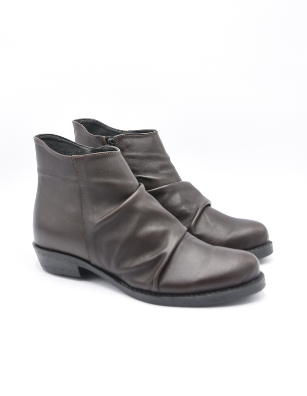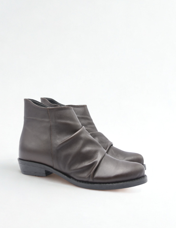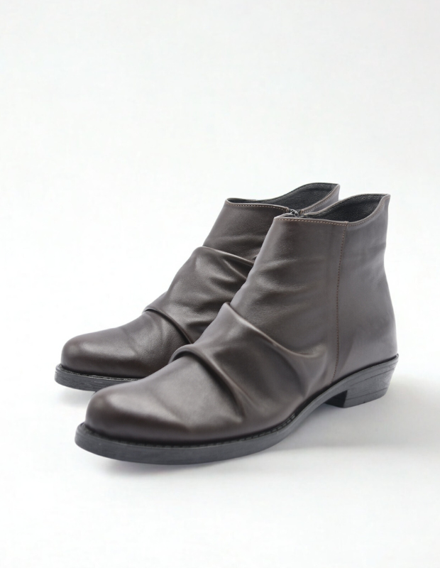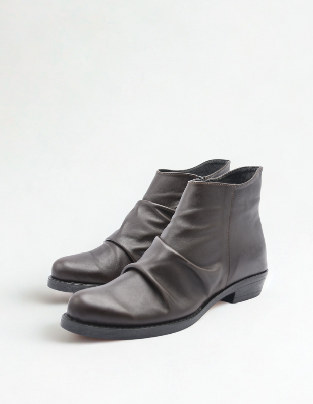 מגפון עור מכווץ בעבודת יד, רך במיוחד ומלא אופי. כל זוג מעוצב בקפידה עם גזרה מעניינת וזורמת שמחמיאה לרגל ומוסיפה נגיעה ייחודית של סטייל יוקרתי. הסוליה היצוקה מעוצבת בקווים נקיים ואלגנטיים, משלימה את המראה ומבטיחה יציבות ונוחות לאורך כל היום. דגם שמשלב בין אומנות, איכות ונשיות עדינה.