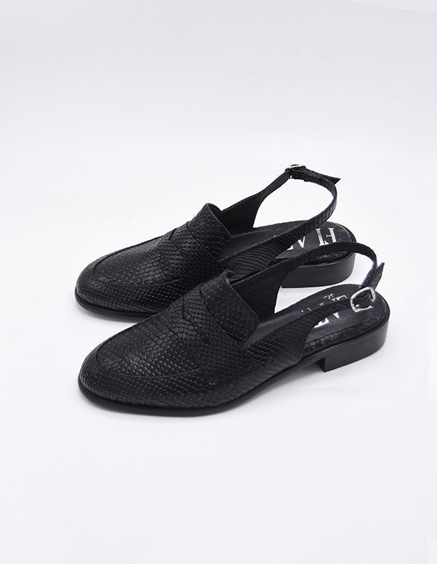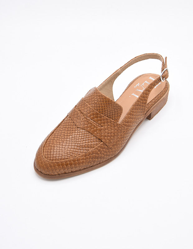 הנעל עשויה עור רך עם טקסטורה  מיוחדת בעבודת יד