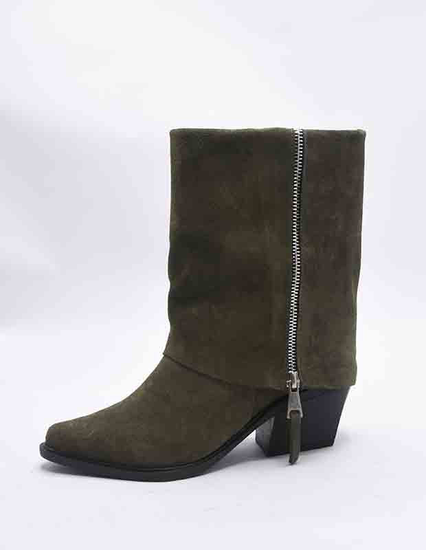 מגפון עור עם עקב בינוני ורוכסן צד דקורטיבי – מראה קלאסי עם טאץ’ מערבי מלא נוכחות.