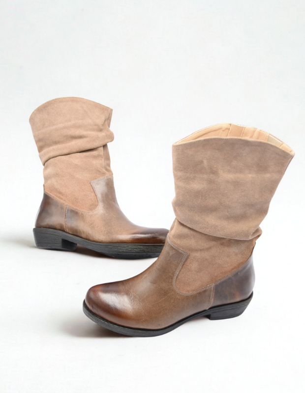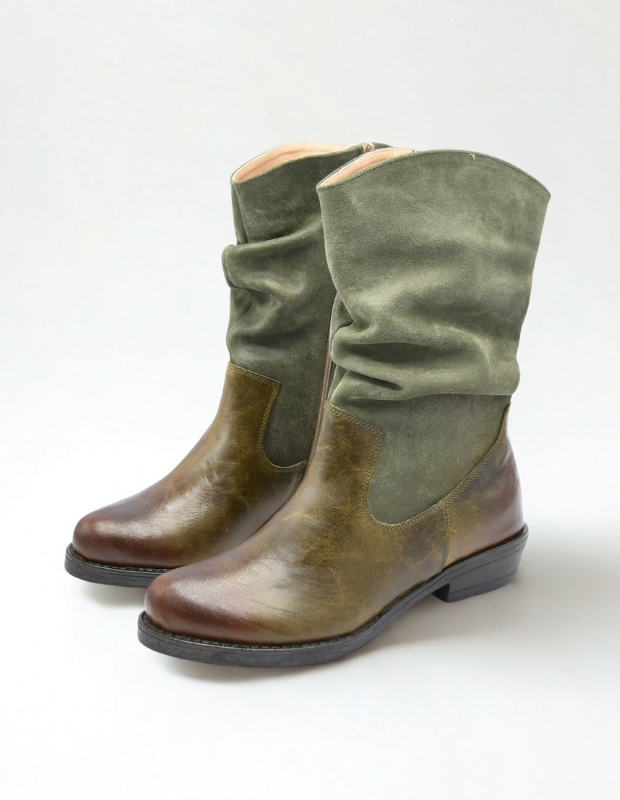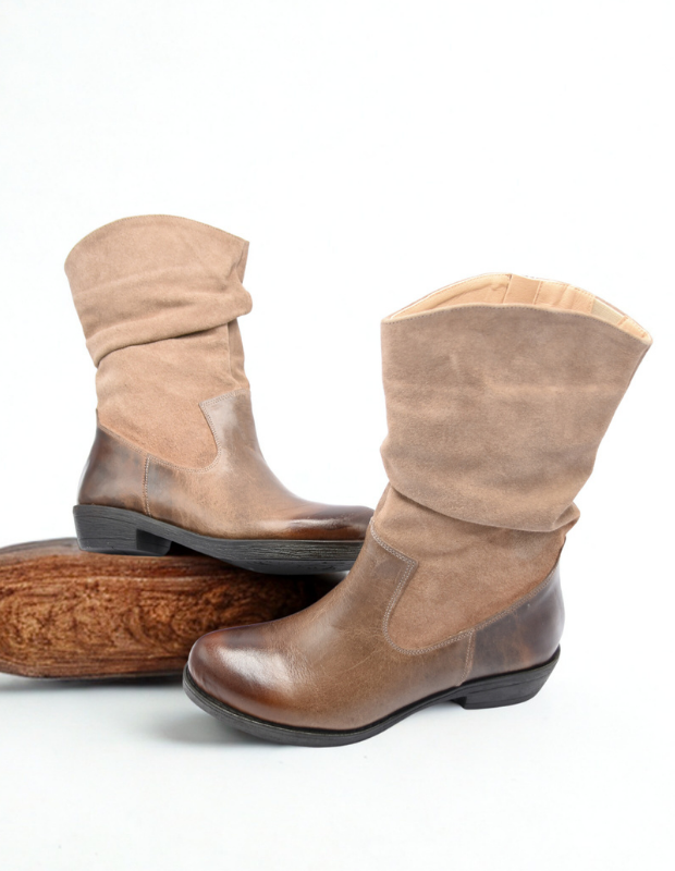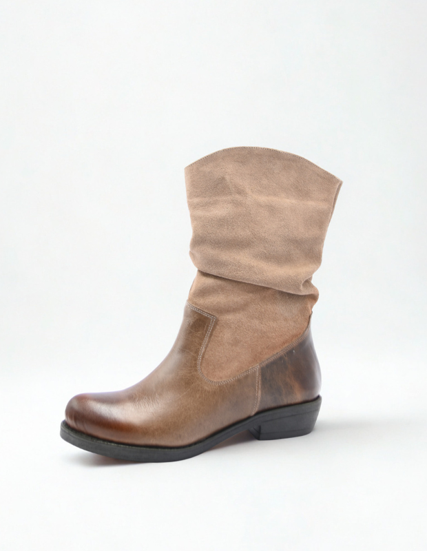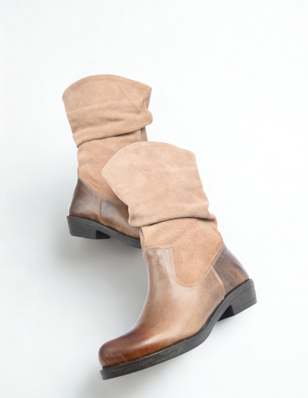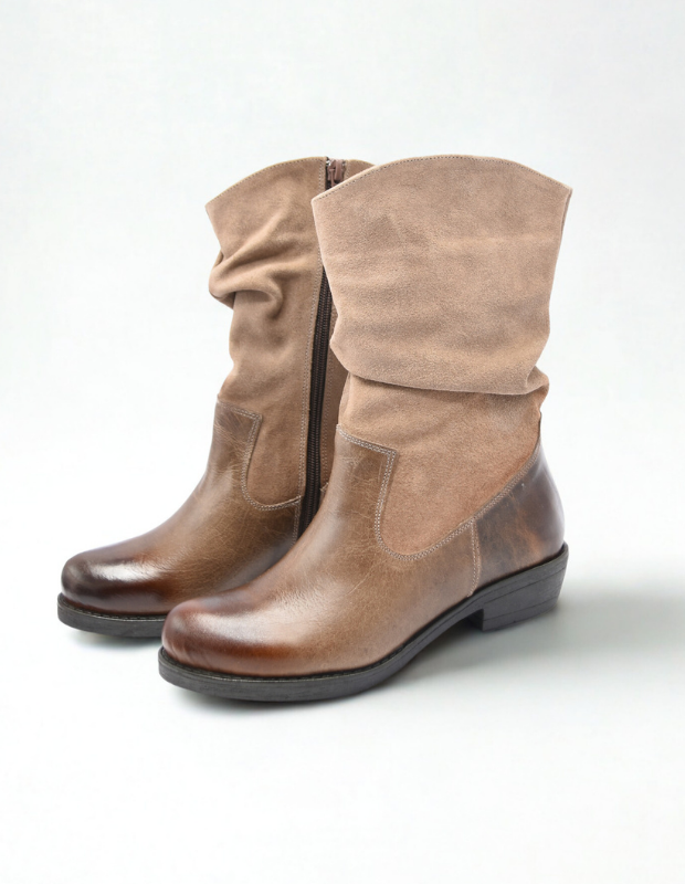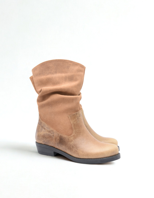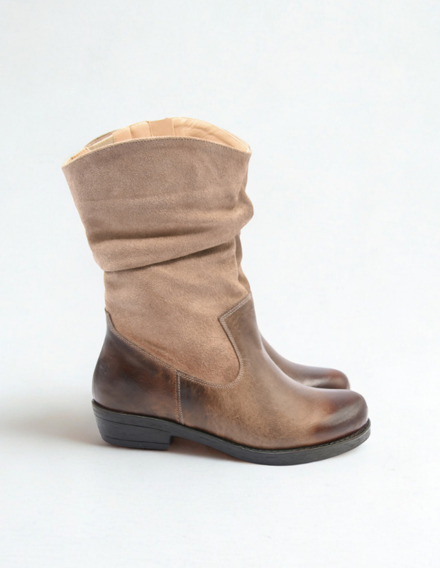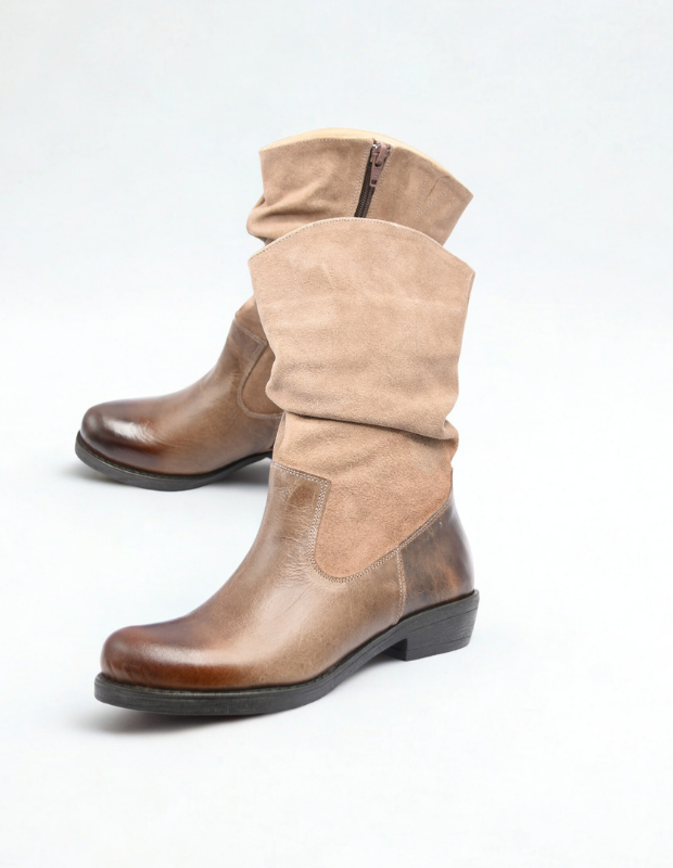 מגף עור בעבודת יד עם גפה רכה ומקומטת, שילוב מושלם בין נוחות לסטייל.