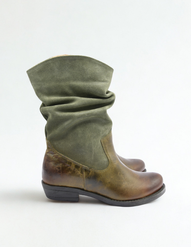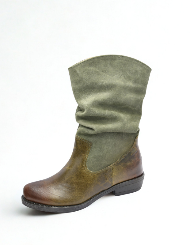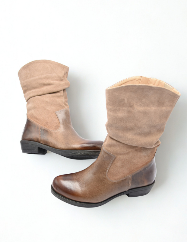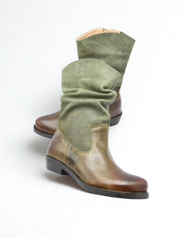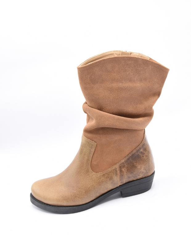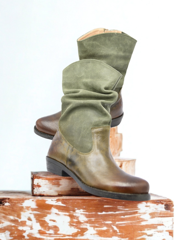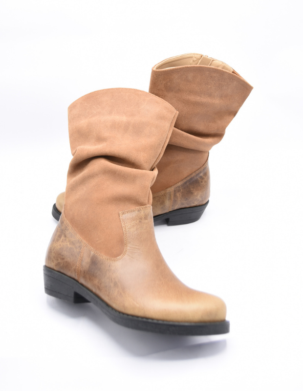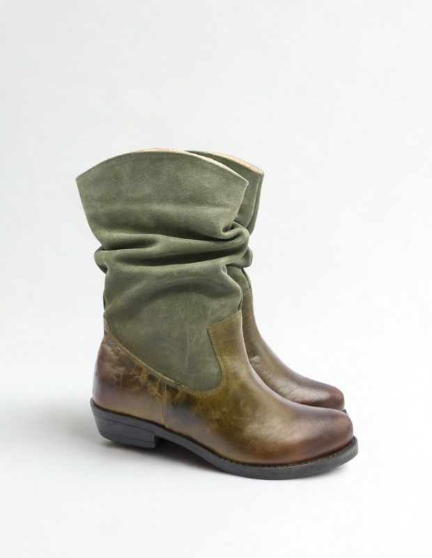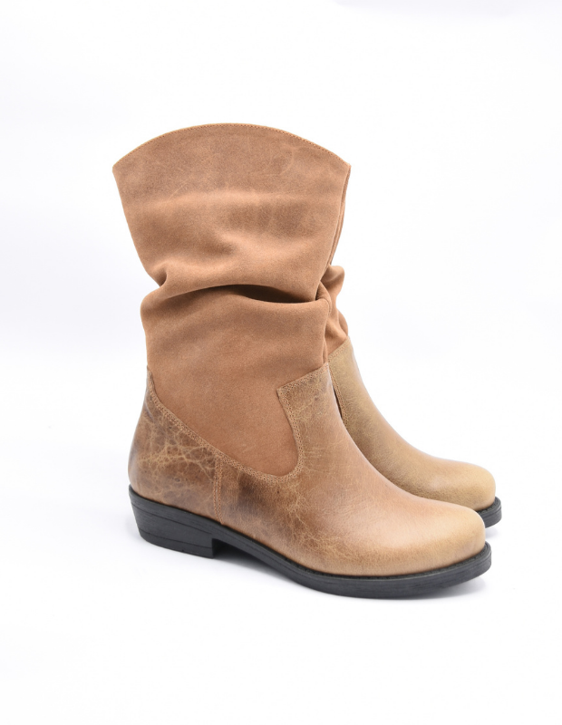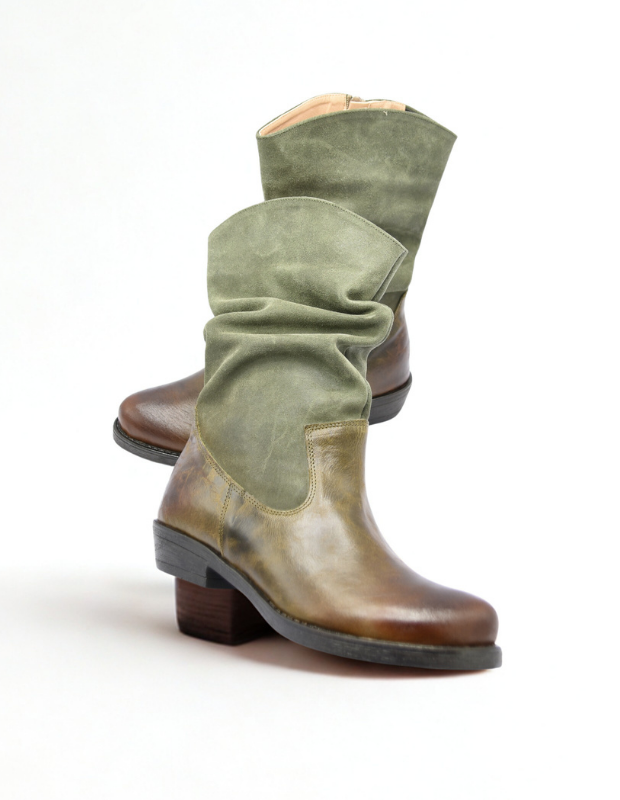 מגף עור בעבודת יד עם גפה רכה ומקומטת, שילוב מושלם בין נוחות לסטייל.