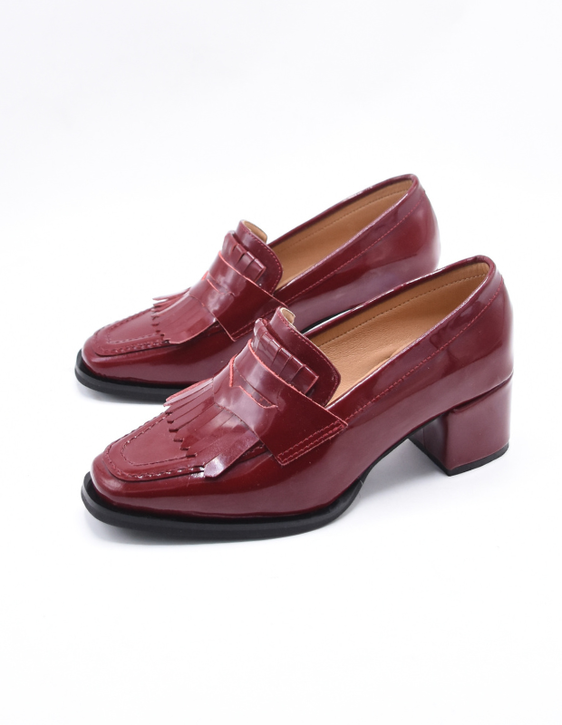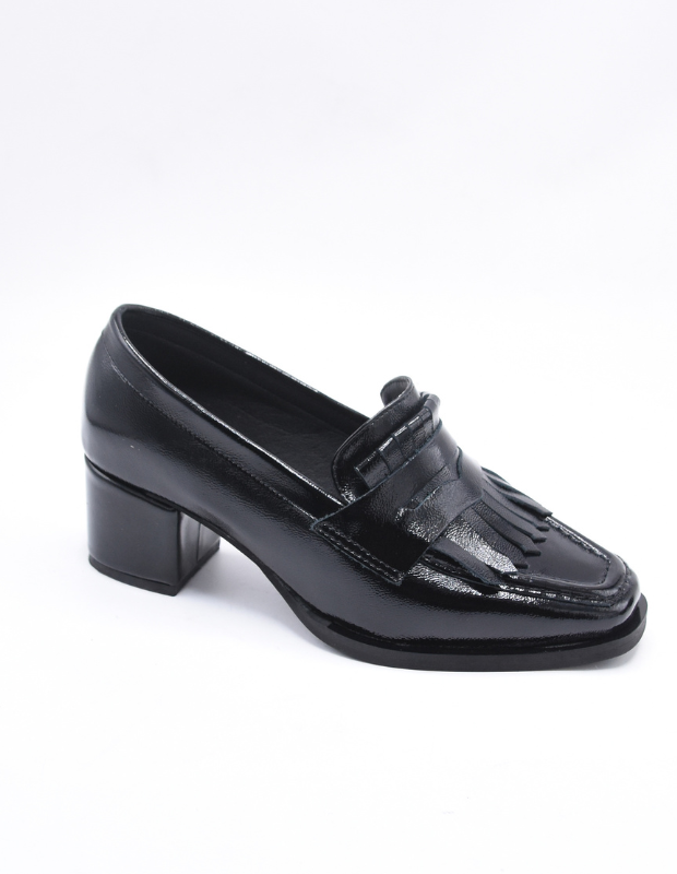עשוי עור טבעי מבריק עם גימור פרנזים אלגנטי ועקב בלוק יציב שמעניק נוחות בלתי מתפשרת.