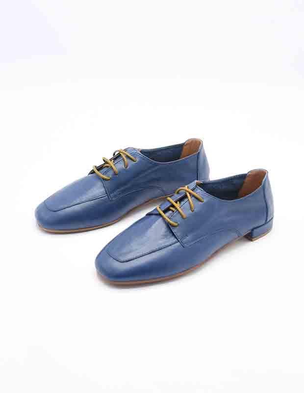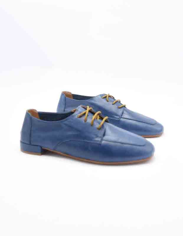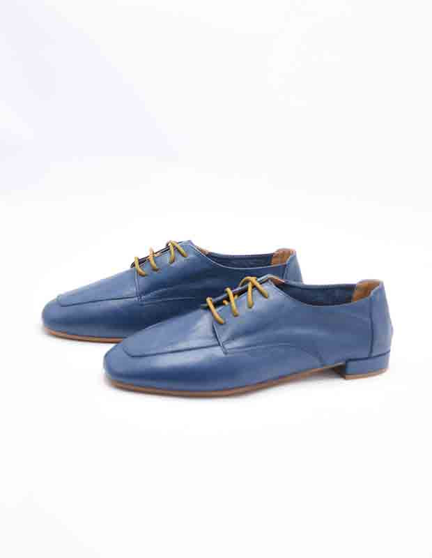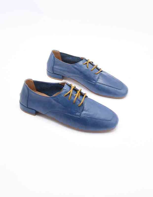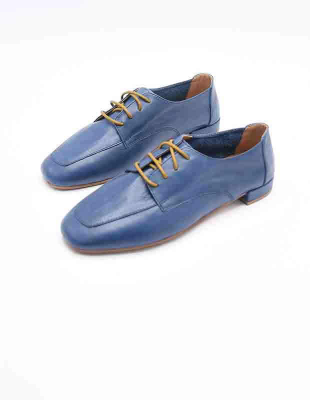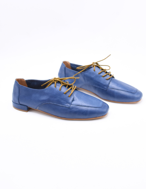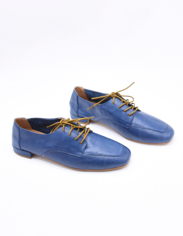 נעל עור בעבודת יד בגוונים מלכותיים, בעלת גזרה מינימליסטית ואלגנטית עם נגיעות מודרניות.