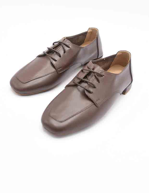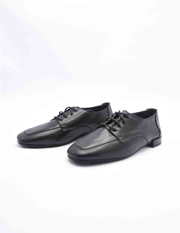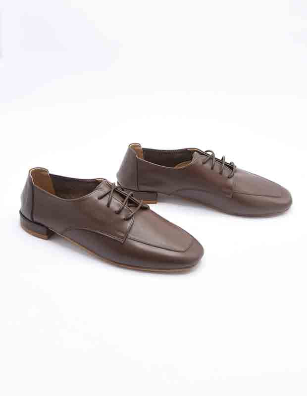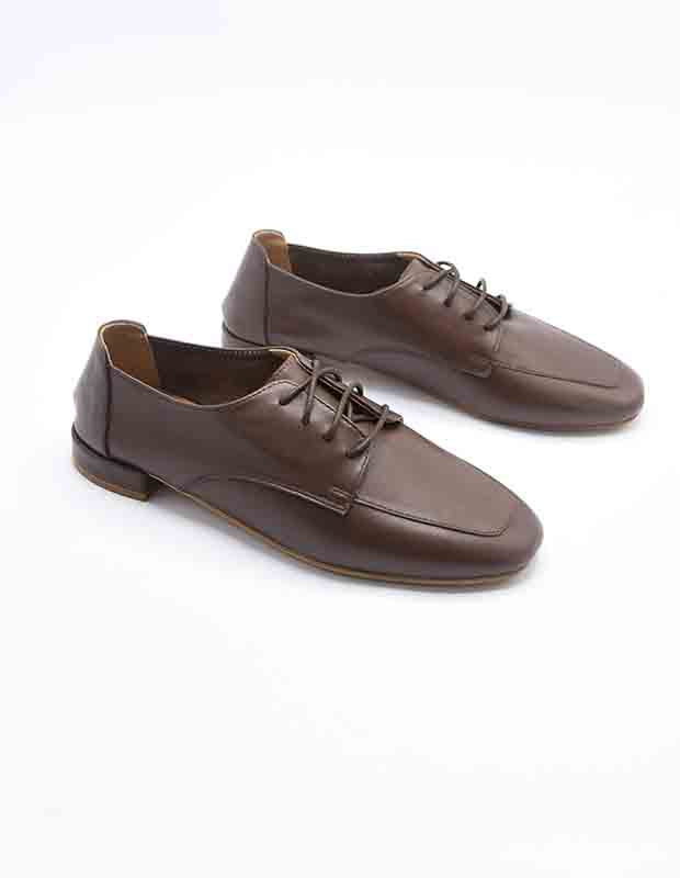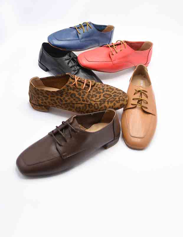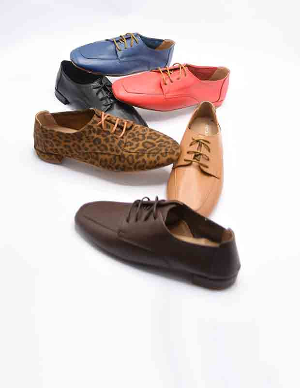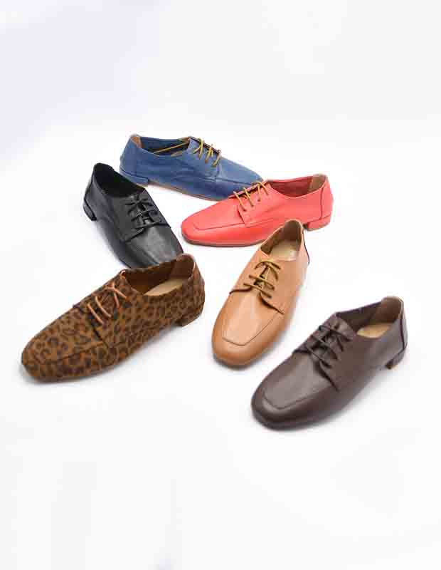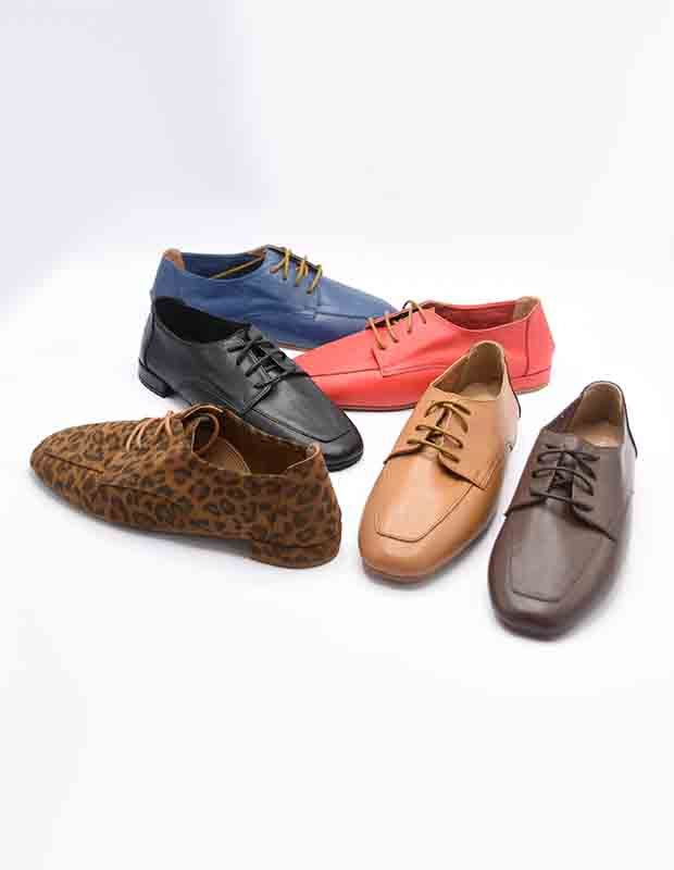נעל עור בעבודת יד בגוונים מלכותיים, בעלת גזרה מינימליסטית ואלגנטית עם נגיעות מודרניות.