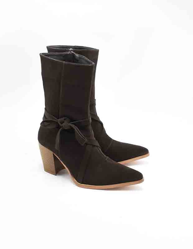 מגף ¾ בעבודת-יד מעור רך ומשובח, בעיצוב קלאסי עם טוויסט מודרני. עקב נוח ומעוצב מעניק יציבות ורכות בכל צעד, וסרט קשירה ייחודי הנקשר סביב המגף מוסיף טאץ’ אלגנטי ומראה מתוחכם. שילוב של אומנות עבודת-יד עם קווים נקיים יוצר פריט על-זמני שמתאים בקלות למראה יומיומי וגם לערב מיוחד.